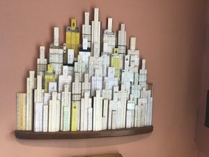 Many years ago, internationally acclaimed found-object artist Leo Sewell, used a collection of slide rules to make a unique slide rule cityscape. We recently uncovered a photo of the piece in a stack of old documents, and we are happy to share this piece of art with you here: