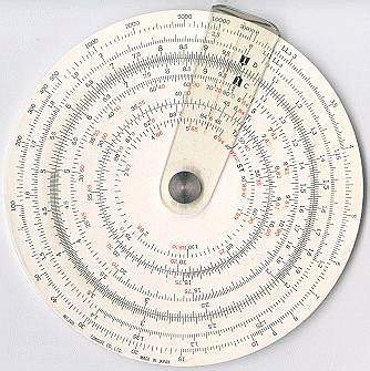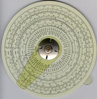 Massive 8 inch diameter circular slide rule, with functions for computing time, speed and distance. Very nice rule, very similar to Mark 1, FNS-3. A very useful rule, an envelope case is included and one sheet of instructions, back is blank. (6 scales) |