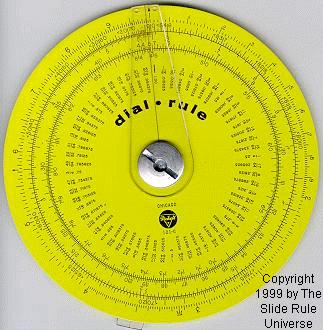 Pickett's commercial pricing circular rule, a huge 8" plastic simplex rule. Instructions on the face. One stationary back side, one rotating front disk, and one rotating clear cursor. Very neat and useful slide rule. (4 Scales) |