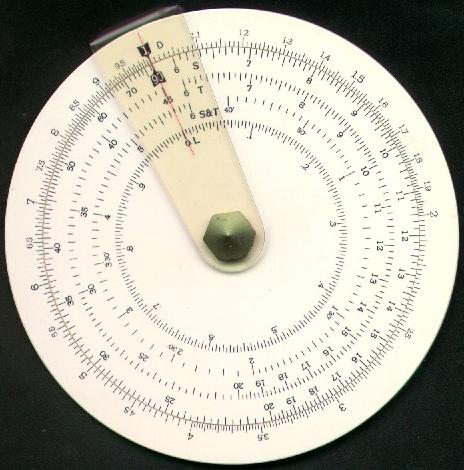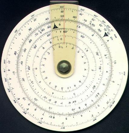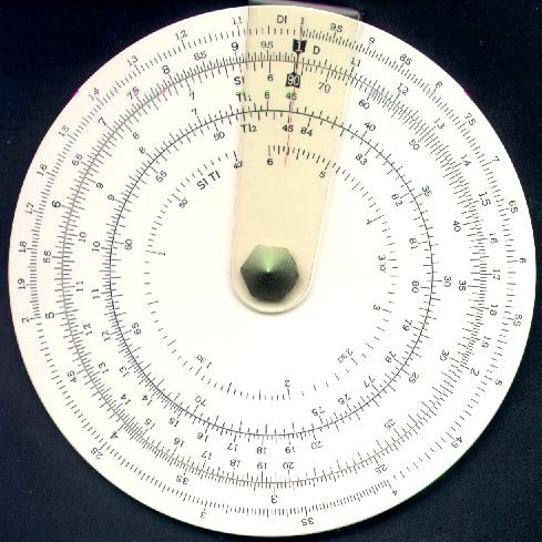 Massive 7 inch diameter circular slide rule, with all functions for computing a parachute drop. Very nice rule, was brand new in MIl-packaging, was opened to take the pic only A truly fascinating rule. BRAND NEW, instructions on front face, back is blank. (4 major scales + 4 minor scales) |