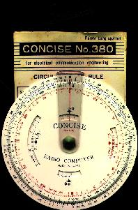 An amazing 110mm/4 1/2 inch pocket circular slide rule, with extensive duplex electronics calculating functions. This rule computes L/C/Frequency/dB/Reactance/Wavelength/Power ratio. Very rare, seldom seen in North America, a must have rule for electronics professionals. (14 Scales!) |