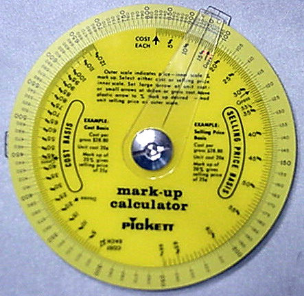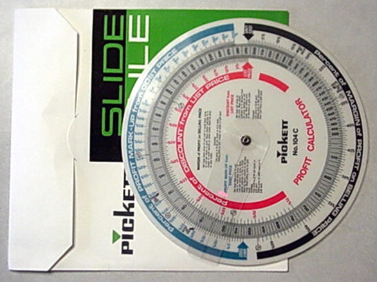 4 Inch Simplex Circular Pickett's popular plastic commercial circular slide rule, with mark-up and discount functions. Very nice rule, with operating instructions on the face, used excellent condition. Convenient pocket size, very hard to find! (4 Scales + directions) |