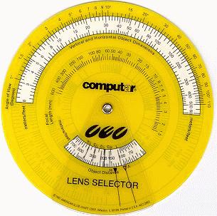 A neat little 4 inch circular rule used to determine camera lens performance/field of view with various different CCD cameras with image areas from 1 inch to 1/4 inch. Plastic front and cursor, cardboard rear section. New rules, no case. (4 Scales) |