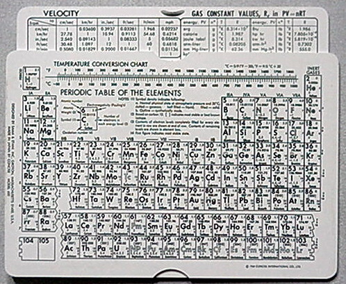 BRAND NEW, PERFECT, NOT-IMPRINTED. A compact 2 1/2 inch pocket circular slide rule, attached to a rectangular data center card with pull-out insert. The rear side has a metric data conversion table, the center has a pull out data chart physical data, constants, formulas and terms. Ideal for those in any general science area working with metric units. Very nice rule, complete with red vinyl slip case and manual. BRAND NEW, complete with vinyl case and manual. Many people asked for the periodic table, as was found on the back of the 600ST (no longer available), so we found some beautiful laminated color tables that fit perfectly inside the case with the rules. Add one to your set for a small charge. We have no stock of the periodic tables left, but have more coming. (8 Scales, Side Rulers, Metric Data + Physical Data Card) |