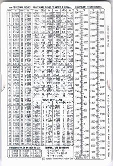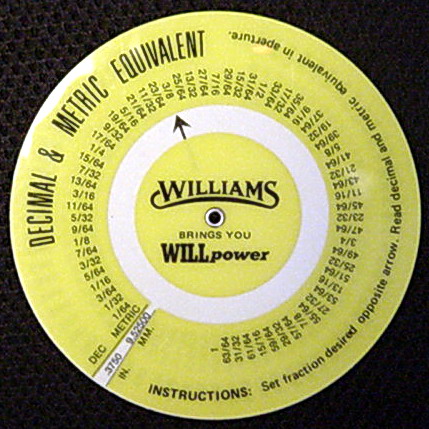 Williams Decimal/Metric Equivalent Calculator $26 Ea.