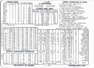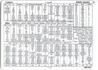 BRAND NEW, PERFECT, NOT-IMPRINTED. A compact 2 1/2 inch pocket circular slide rule, attached to a rectangular data center card with pull-out insert. The rear side has a metric data conversion table, the center has a pull out data chart with color codes, wire data, constants, formulas and terms. Ideal for those in the electronics industry working with metric units. Very nice rule, complete with vinyl slip case and manual. BRAND NEW, complete with vinyl case and manual. (8 Scales, Side Rulers, Metric Data + Electronics Data Card) |