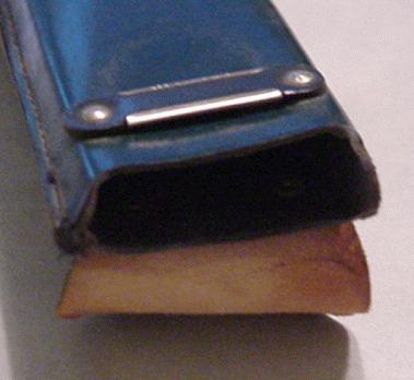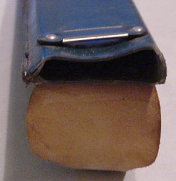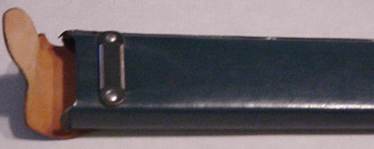 Hemmi bamboo core rules have a very similar celluloid laminate scale design to K+E wood body rules, and the same techniques work well on these rules. A gentle abrasive pad like scotchbrite will restore the face of most rules, and remove many marks. The entire surface or side usually has to be done at one time, to keep the appearance uniform. Bamboo is naturally self-lubricating, so nothing is really required to keep motion uniform and smooth, BUT the surfaces can become rough after long storage (ends of fibers become exposed), and rubbing the sliding surfaces with that same scotchbrite pad will restore the smooth surface, and improve the action. If the bamboo is severely dried out, a gentle rub with a cloth that has a bit of Pledge will usually restore the action. You may need to adjust the body frame if action is too loose or tight, this is done by slightly loosening the two top body screws, and bringing the scales into alignment, and then adjusting width to give the desired action. Fixing CursorsA common problem with rules is that the cursor may get broken, or the line disappear. These problems can both be fixed with some care. If the cursor has glass faces, the only workable solution for a broken lens is a new one, and spare parts do exist for many rules (we have them HERE). If a spare parts can't be found, often a poor rule can be scrapped to create the required parts. K+E and Dietzgen glass is particularly hard to find, and getting parts from a salvage rule is often the best way to restore another usable rule. Cursor sides also deteriorate, and again, salvage parts or new parts will be needed. Dave Crate has new machined parts for the the K+E 4081 cursor sides. Remember that once the parts are replaced, the cursor has to be aligned for straightness to the index edge to give usuable performance. You can often get a poor rule off of e-bay cheaply to strip for parts, and restore your broken rule. We often have to do this to get parts/ IF THE CURSOR LINE DISAPPEARS, take it apart, and clean it well. if it is a glass cursor, you can refill the line from the rear with a fine tipped permanent marker like a Staedtler-Mars Lumocolor, and then rub off any excess outside the line or wipe it clear with a soft cloth and some Windex. This can restore the cursor lens to new condition. If the lens is plastic, this technique is dangerous, as it may stain the clear lens. In this case, you may be able to use a water soluable marker to fill the line, and rub off any excess. NEED TO CLEAN UNDER A CURSOR? This is actualy very easy, and you don't have to take anything apart. Take a thin stip of 20 pound printer or copier paper, and slide it under the cursor. Gently press the cursor down againt the paper, and rub the cursor away from the paper along the rule. The dirt will adhere to the paper, and leave the lens clean. if the residue is thick, or waxy, a drop of Windex on the paper will help clean the back of the lens. This takes a bit of practice, but is easy to do once you have tried it a few times. Some people prefer traingles of paper, but it's up to you. Walt's Demented Case Trick From the Dark Side: Often the green fiber cases from K+E get "collapsed", and make inserting and removing the rule almost impossible, plus they usually crack when flexed, so there is no easy way to restore the shape, or even to use the case. ![]() Typical useless and irritating K+E collapsed cases.