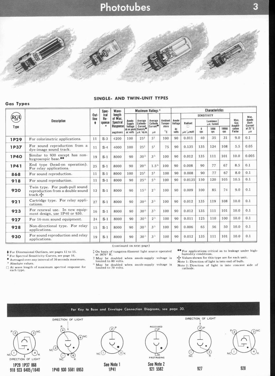 | RCA Photodevices and CRTs | 1P29, 1P37, 1P40, 1P41, 868, 918, 920, 921, 923, 927, 928, 930 |