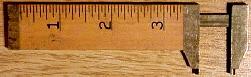 3.5 Inch Measuring Rule Brass and boxwood construction, with edge ruler on one side, and inside/outside caliper on the other, can read to 1/32" on caliper side, and 1/16" on ruler side. Used, some scuffs and marks, but very serviceable, and easily carried in a pocket. (2 Rulers) |