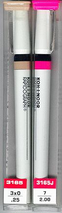 BRAND NEW, BOXED Koh-I-Noor rapidogaph pens, in two sizes: PINK, #7, 2.00mm (0.079 inch) TAN, #000 (3x0), 0.25mm, (0.010 inch)These are recent manufacture, white bodies, made in the USA. Excellent pens for lettering, fine drawing and general drafting, use bulk ink in an internal reservoir. Everybody always breaks their 000 pen or gets it clogged, here's a chance to get a brand new one. (2 sizes avaiable) |