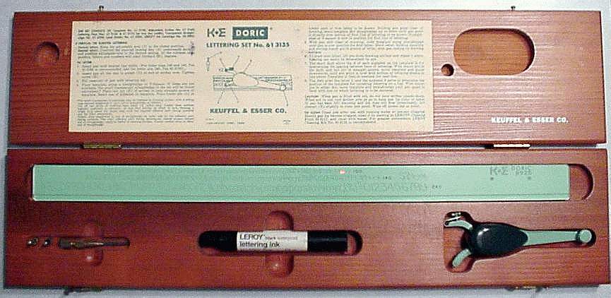 ![]() Click for bigger PIC! ![]() Click for bigger PIC! Click for bigger PIC of SCRIBER! Click for bigger PIC of SCALES! K+E 61 Series Leroy Lettering Set $250-275