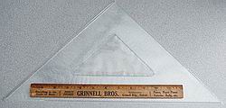 Brand New Drafting Triangless 12/17 Inches long New, perfect condition, clear plexiglass, factory bagged right triangles. 45 degree triangles.12 inch wood ruler for reference (not included!). |