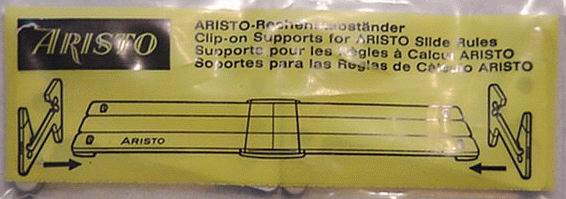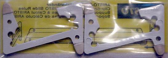 ![]() CLICK for bigger PIC! ![]() CLICK for bigger PIC! Aristo Rule Stands, plastic pairs, in original re-sealable packaging with instructions. Fits most full size (1 7/8" height) Aristo duplex rules like the 968, 970, etc. Slides over the end braces, and locks into place without obscuring any part of the rule. Not for Mannheim or large body rules (969, etc.), and won't fit the Scholar duplexes or early models of the Studio without the later squarish end braces and rubber inserts, even though they are the right width. Very nice for display or use, fully symmetrical, tilts both sides. Comes with most Aristo rules when new, not so easy to find as a spare part! |