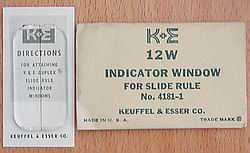 K+E IMPROVED Cursor Runners, used, cleaned and inspected. Left, thinner runners fit 4181 body style, thicker runners on the right fit wood body rules like the 4081, 4092, etc. These are the non-rotting style, very durable. |