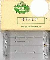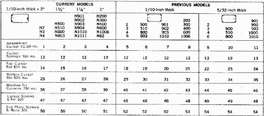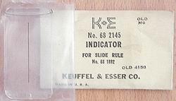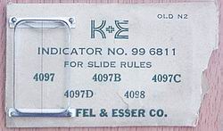 | We have all of the following cursors, new in the box, from Faber Castell. Stock includes some misc. one piece items including cursors for 20 inch rules, and these cursors in quantity: 2/82, 62/82. Full size and 20 inch cursors are $29, pocket rule cursors are $25. Limited quantity, when they are gone, that's it. Click on the photos below to double check cursor construction, ask if you don't see what you need