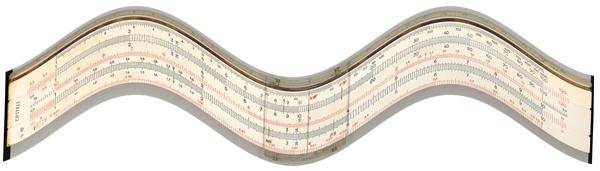 What happens to rules that don't use enough sun-block. In case you are wondering what POSSIBLE harm could come to your slide rule if left out in the sun, here is a sad testament to the enormous power of solar radiation. The Moral? DON'T leave that rule out in the sun unless you want it to look like a plastic pretzel. Even a lowly Sterling 587 deserves a kinder fate than this. |