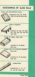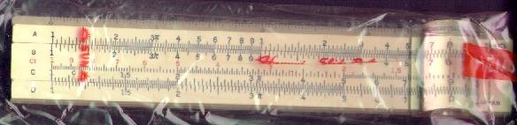 This is the mysterious transitional rule that existed for only a brief period as the Hemmi 258, them became the POST/Hughes-Owens Versalog rule. This is one of only two examples I know of that are dual marked, and is the Hughes-Owens 1777 version of the Versalog. Duplex bamboo body rule, leather case, with full hard cover manual. White celluloid scales, adjustable end braces. Has full log log scales. Folded scales (DF, CF, CIF) at pi. The date of this rule model's introduction appears to be circa 1951, based on the manual copyright date.