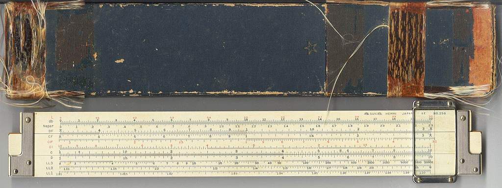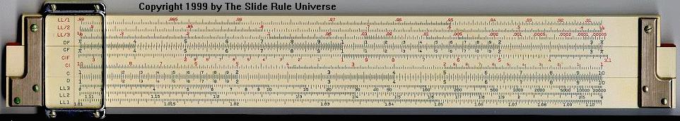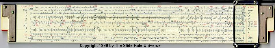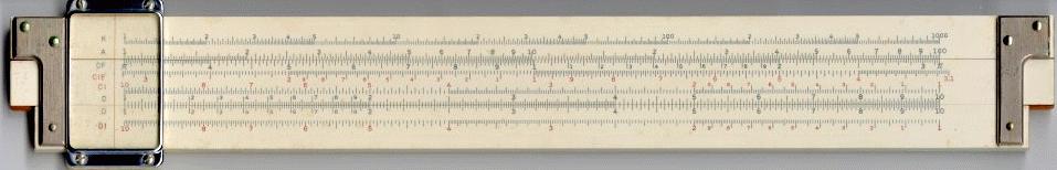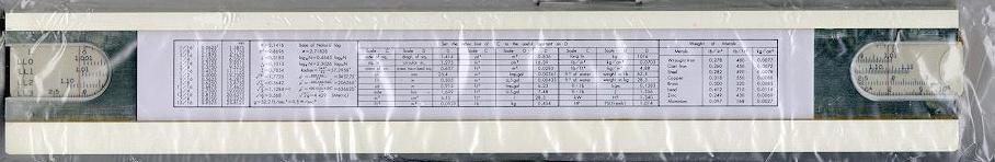 Extended size duplex bamboo body rule, 2 part hardboard case case, with full manual. White celluloid scales, adjustable end braces, slightly smaller body height than 260 series rules. For electronics use, vector and hyperbolic scales. (20 Scales)