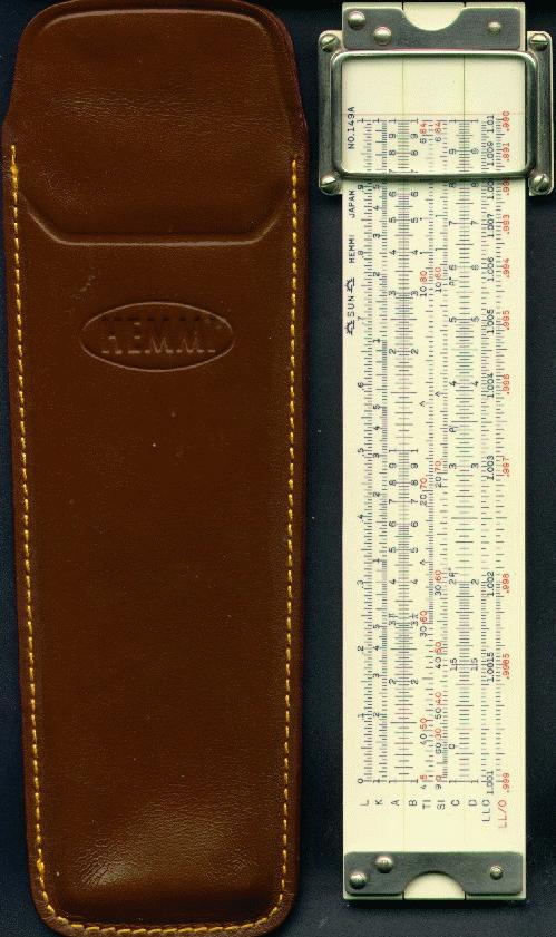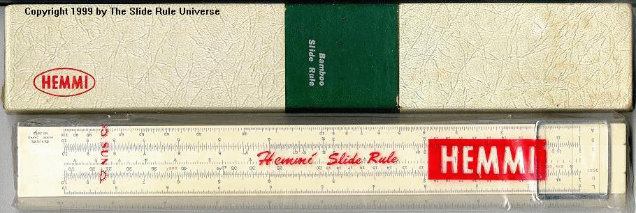 Hemmi rules have a very distinctive style, with engraved and filled scales. They are very robust as a result, and do not wear out easily. Many of their rules that are more than 50-70 years old are still in wide circulation, and are still completely readable and work perfectly. Most of their rules have bamboo bodies, with laminated white celluloid scale faces. The unique non-warping and self-lubricating nature of bamboo, made these rules extremely popular, and long wearing. Hemmi later made plastic body rules (part numbers generally begin with P) which are also of very high quality, and were rebranded and sold by others outside of Japan. The Hemmi duplex cursor is an excellent design, and largely self-aligning, unlike virtually all other makes. Hemmi's slide rule designs always had many small features that were both ingenious and useful, making the rules a delight to use. When the full size rule number is followed by an 'L', it means the rule is provided in a leather case, otherwise it came in a two part hardboard case. Pocket rules normally came in a small leather case. Plastic body rules came in a two part plastic case.