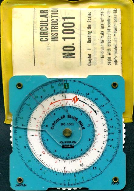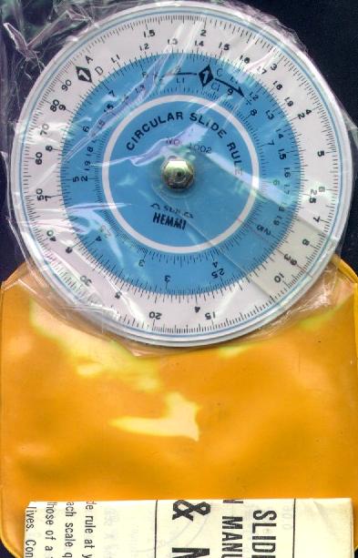 A compact 75mm/3 inch pocket circular slide rule, with an unusual blue circular rotating scale. Virtually unknown here in North America, this Hemmi plastic circular rule is very attractive and functional, with a very striking blue color scheme. This is an attractive lightweight pocket rule, with performance equal to a much larger straight rule. Rotating cursor and disk, blank on the rear. Came complete with vinyl case and manual. (4 Scales)