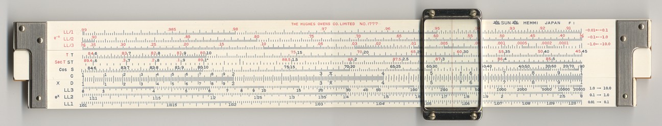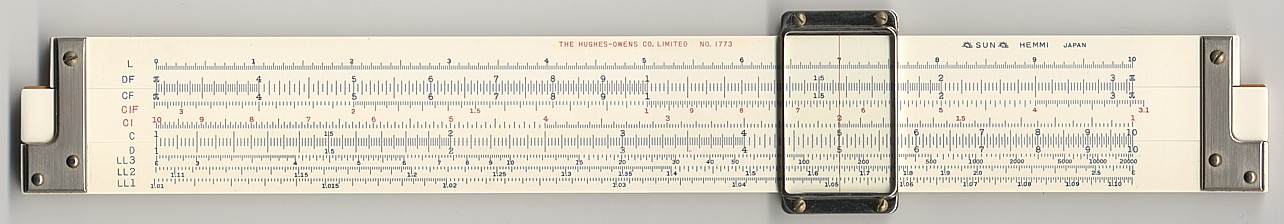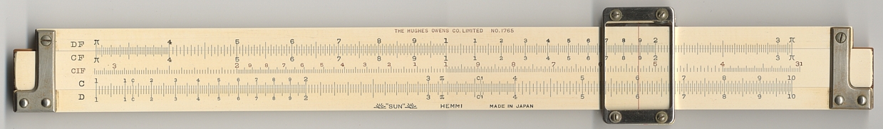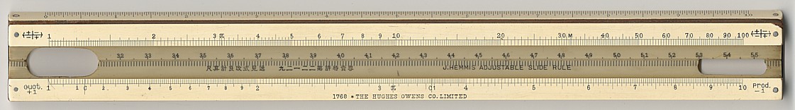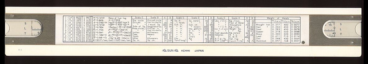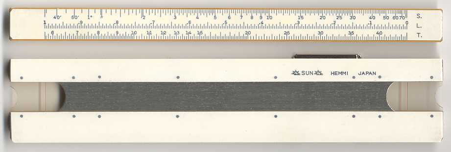 Slanted top edge, with ruler. This appears to be a Hemmi 50, rather than the Hemmi 40 as later 1768's were. |