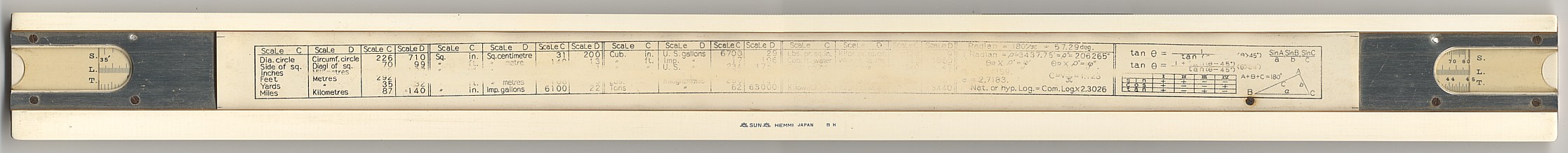 Hemmi trig scales for direct solution of right triangle problems. $10.50 in 1937. |