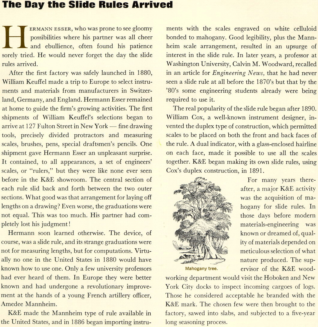 ![]() Click to VISIT or RETURN ![]() To go to the Slide Rule Marketplace | ![]() | ![]() An amazing tour with K+E from 1940. ![]() Learn How to Operate a Slide Rule with a 1928 K+E Lesson |