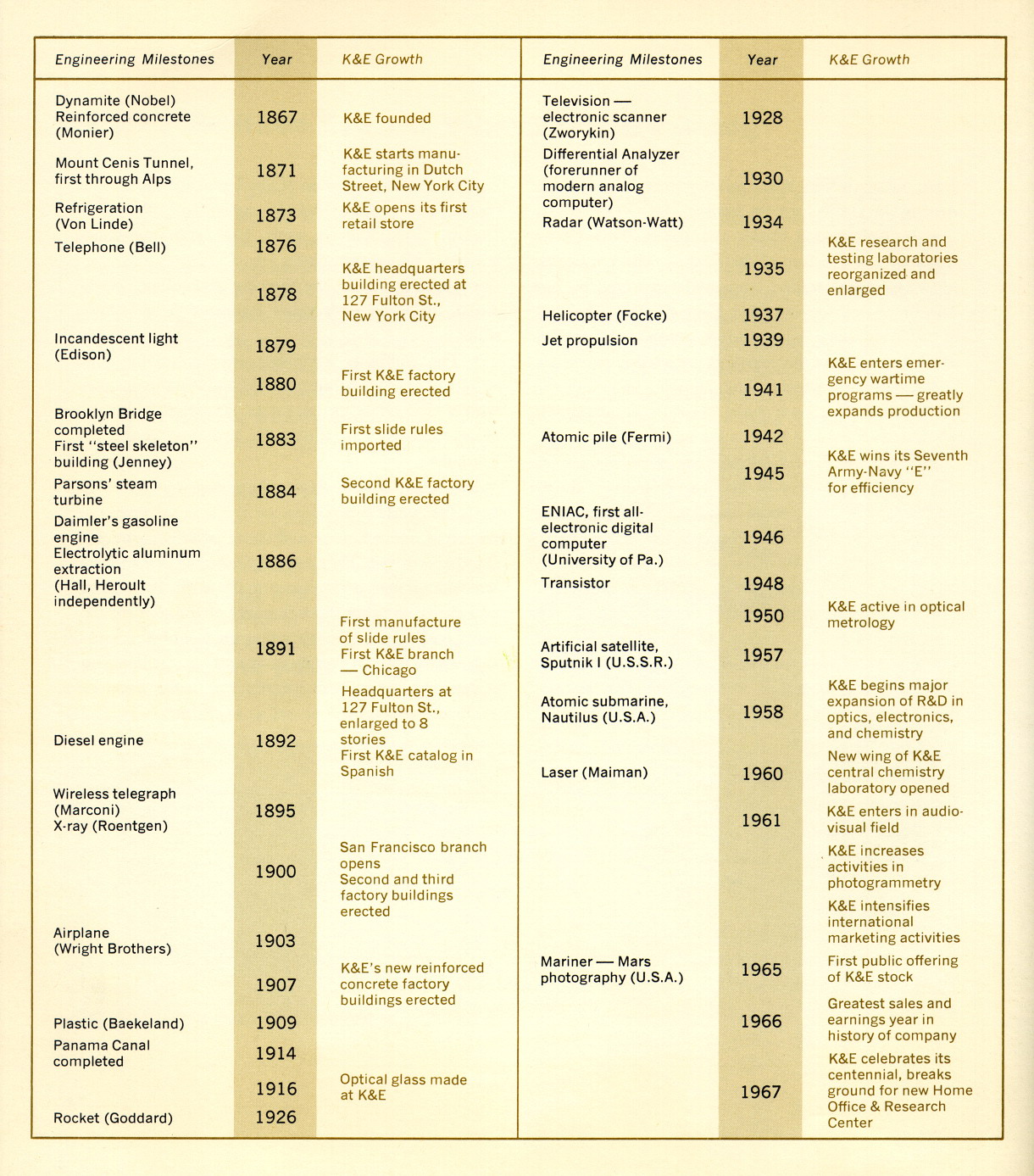 ![]() Page 36, showing K+E's corporate timeline versus major world events. CLICK for full size JPG file. |