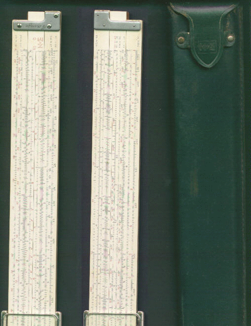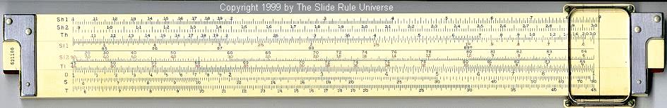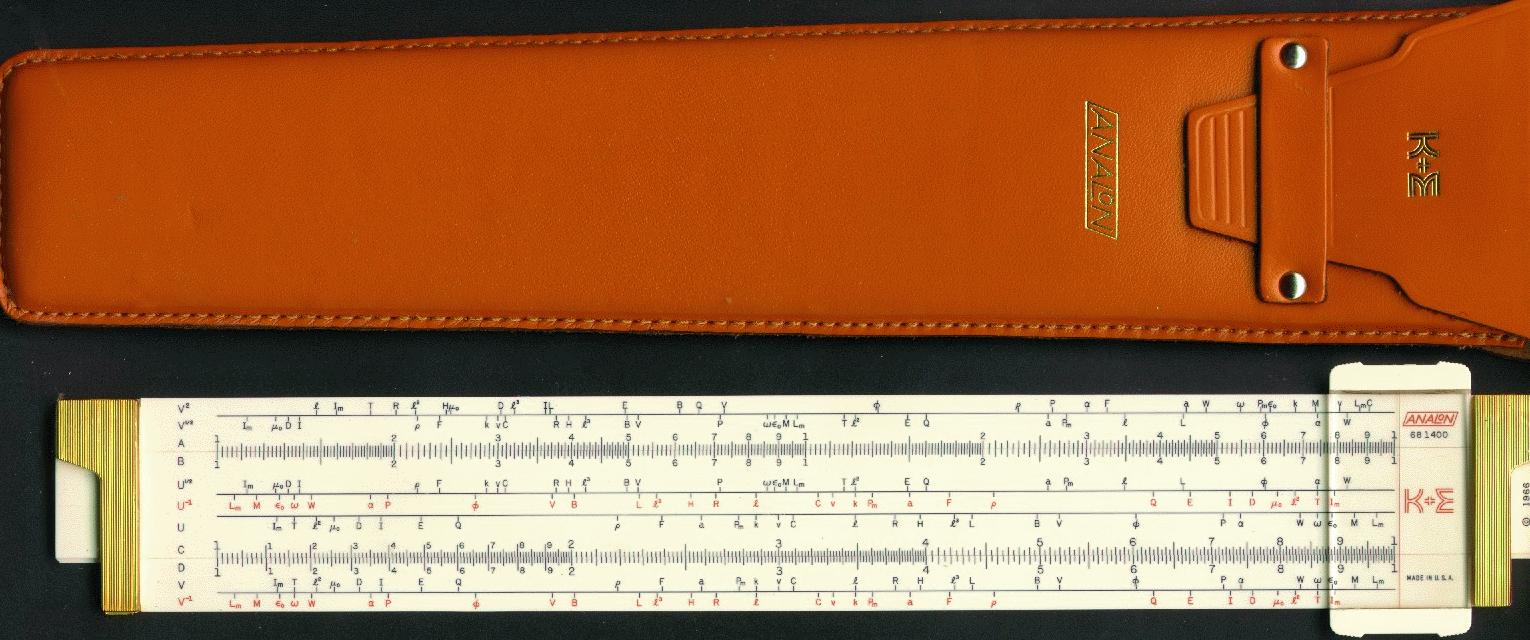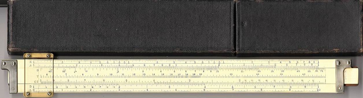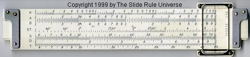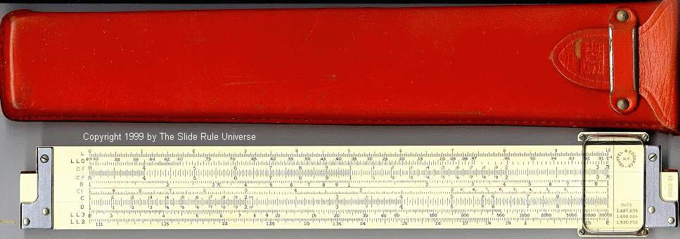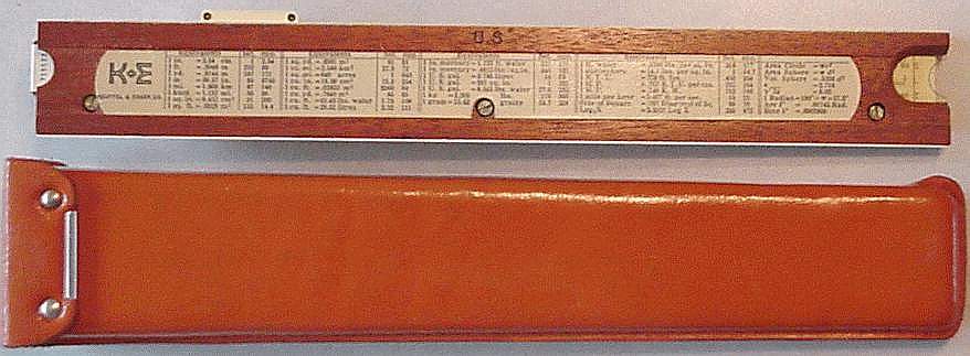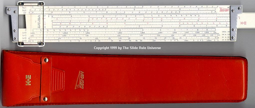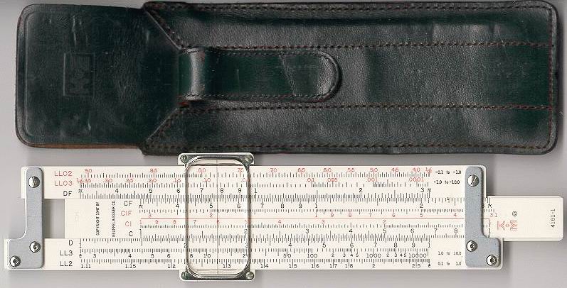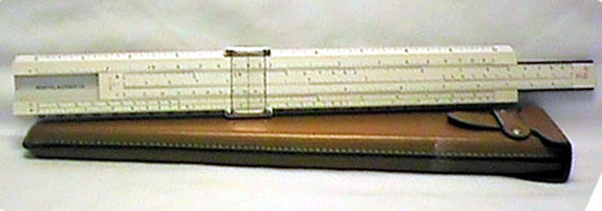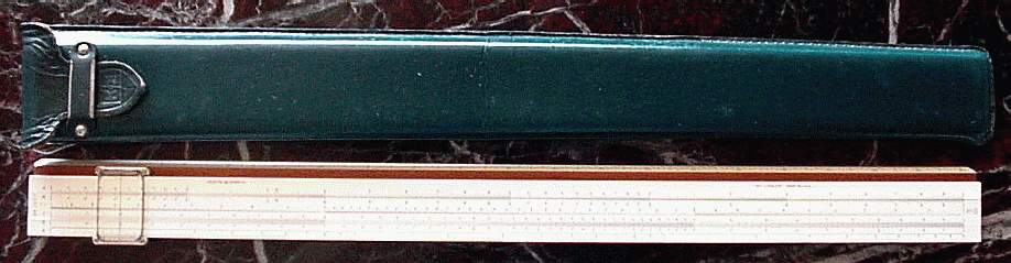 Improved unbreakable cursor, leather case, special manual. Completely unique rule and scale design, with pysical constants on the scales. | |