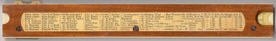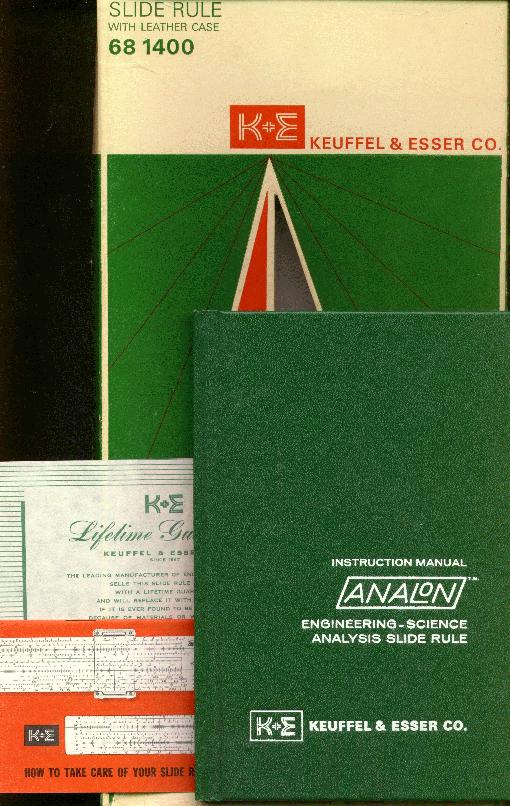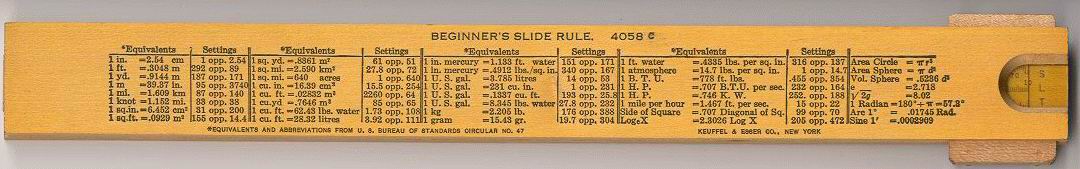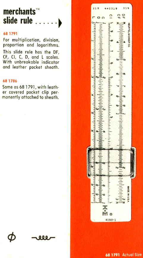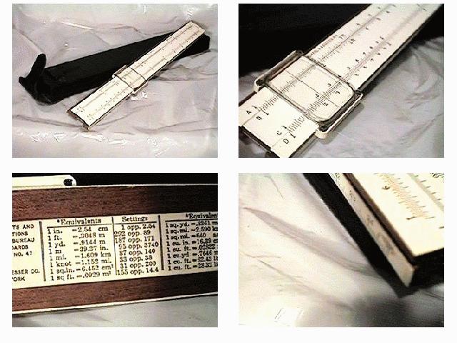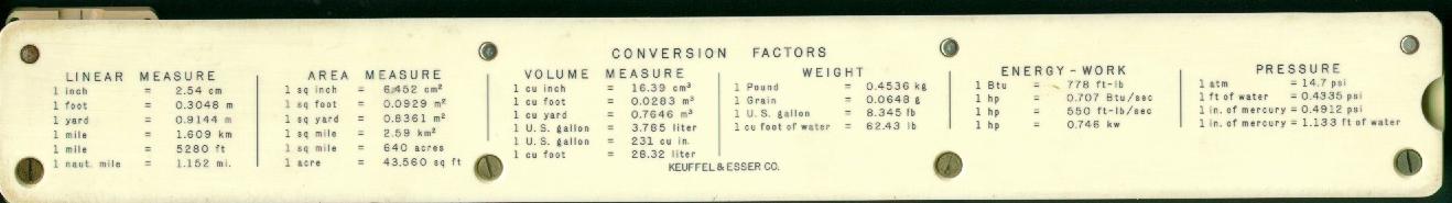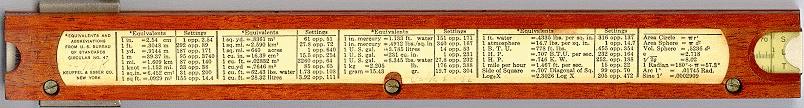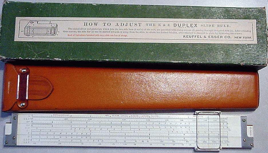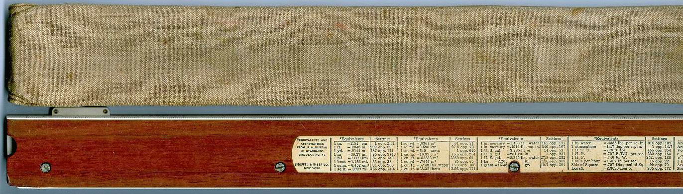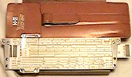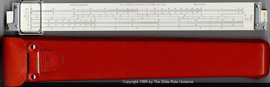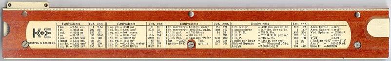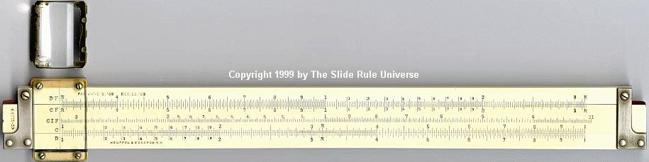 Improved unbreakable cursor, leather case, special manual. Completely unique rule and scale design, with pysical constants on the scales. | |