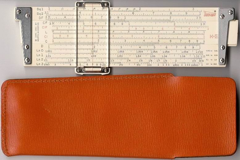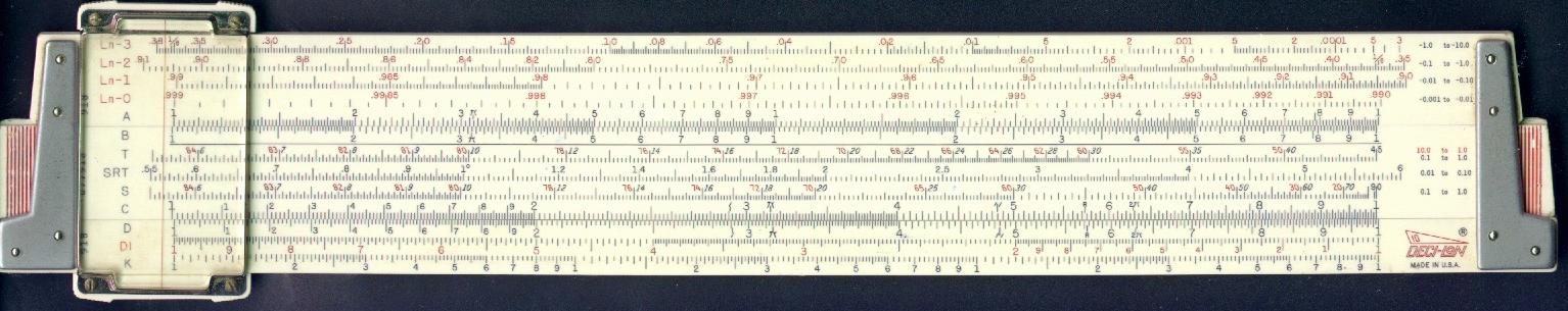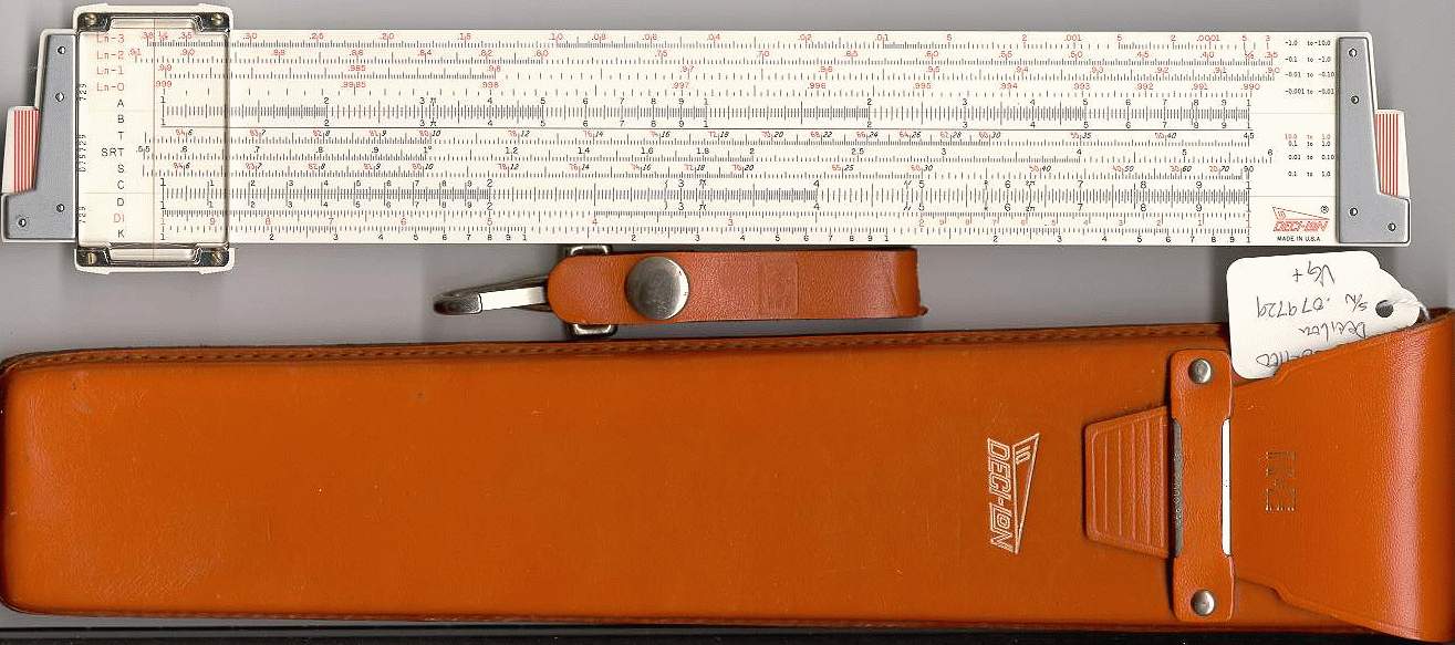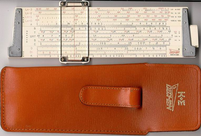 Ln-3, Ln-2, Ln-1, Ln-0, A, [ B, T, SRT, S, C, ] D, DI, K Improved plastic cursor, leather case. Final Deci-lon production, no model number or grip lines on slide. | ![]() CLICK for bigger PIC! CLICK for OTHER SIDE! |