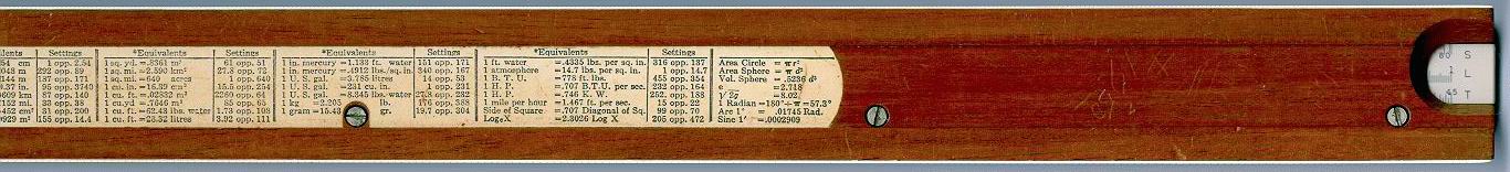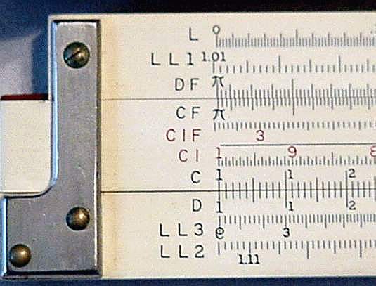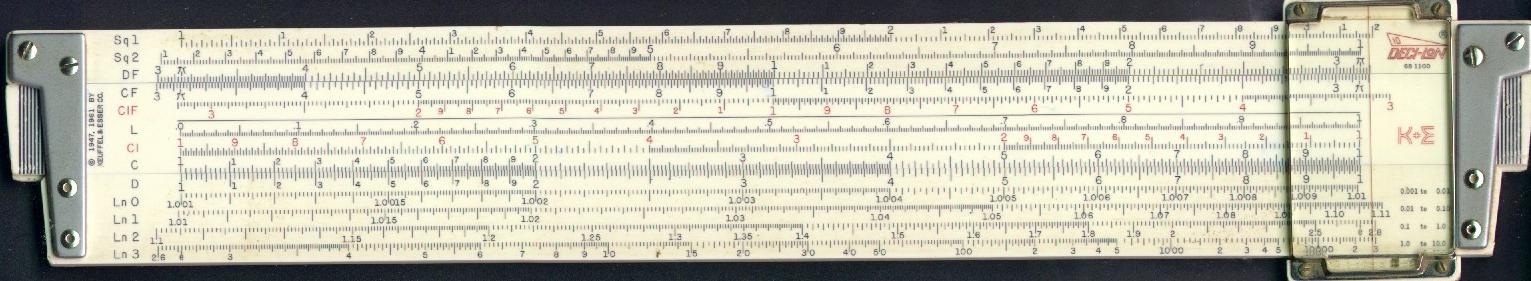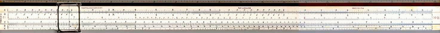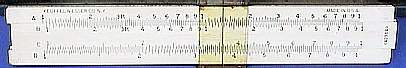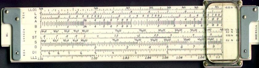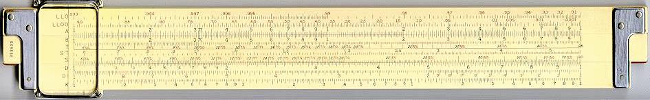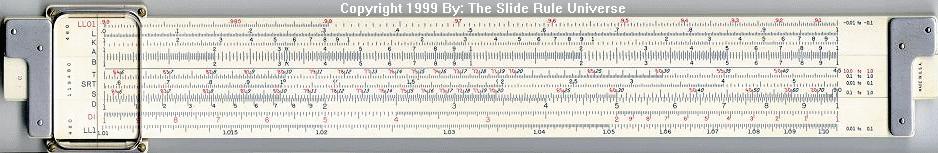 LL02, LL03, DF, [ CF, CIF, CI, C, ] D, LL3, LL2 Improved glass indicator. Hyperbolic Sine and Tangent Trig scales, used in the power industry. | HYPERBOLIC SCALES![]() |