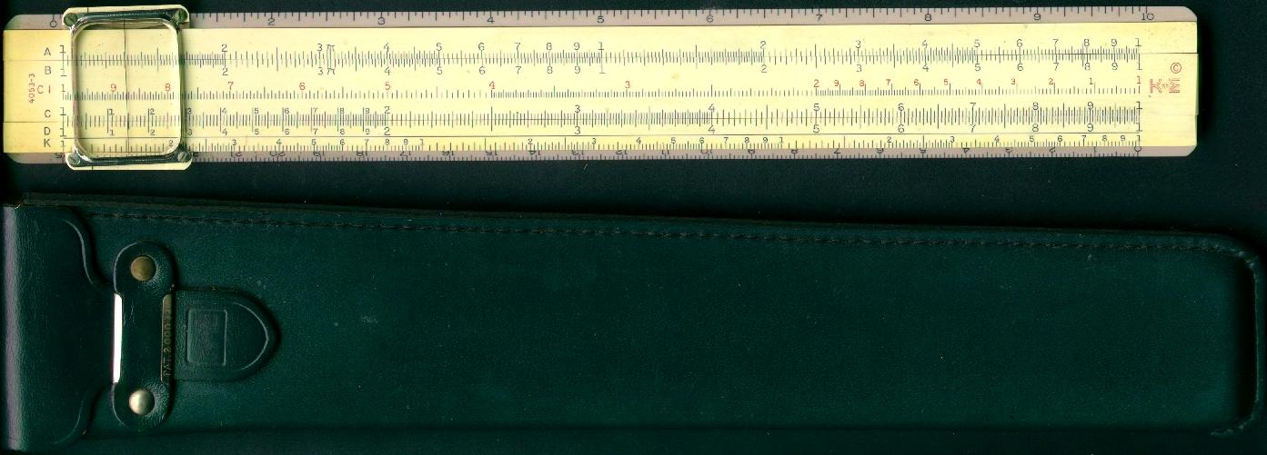 LL01, L, K, A, [ B, T, SRT, S, ] D, DI, LL1 Improved cursor, leather case. Appears to be a re-numbered 4081-3 rule. | ![]() CLICK for BIGGER PIC |
