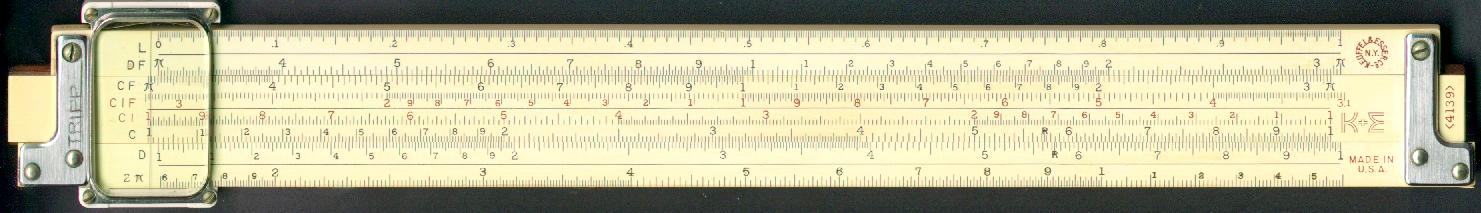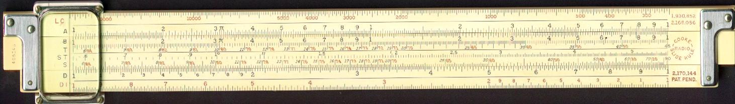 LL02, LL03, DF, [ CF, CIF, CI, C, ] D, LL3, LL2 Improved glass indicator. Trig scales decimal degrees. Many cosmetic variations. | ![]() Click for other side! |