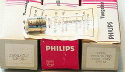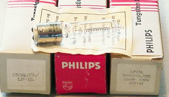 ![]() High intensity tungsten halogen lamps, dual bayonet base, 130V, 250 Watts. Marked LP-SL, plus with the 250Q numbers. New, factory boxed with protective covers. Just arrived! |