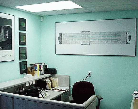 6 Foot Experimental Rule DisplayAn astonishing display of digital techniques made by Al Kalian, and now proudly hanging in the front office of Sphere Research! Al managed to make a super high resolution scan of an FC 2/83N rule (my favorite), and after many frustrating adventures with printing companies, finally got one to output the file on a giant color plotter. The rest is history, as you see here. Al also discovered that even if he sold them for a zillion dollars each, it would barely cover the staggering production costs, not to mention the frustrations in getting vendors to cooperate, so this is the only one he ever made. Needless to say, we are eternally grateful, as the huge picture is truly breathtaking!. |