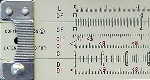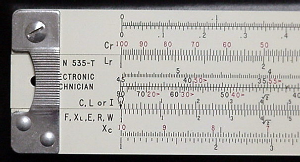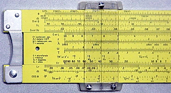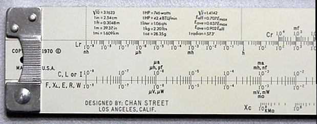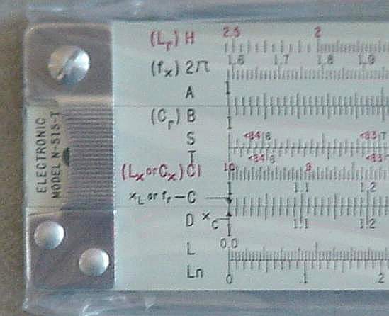 Almost gone! A great graduation gift for the new electrical engineer! 12" / 10" Electronic Duplex Slide Rule (15 Scales) Front - H, 2pi, A, [ B, S, T, CI, C ] D, L, Ln Back - Reactance/Resonance Decimal Point locator scales formulas and factors |