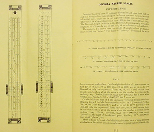 CLICK for a BIGGER PIC! Just in! Decimal-Keeper N904T Sets! 12"/10" Full Size Duplex Trig Slide Rule with special multi-decade expanded scales, capable of an astonishing 20-60 decades of dynamic range! Brand NEW factory boxed sets with 2 manuals (one is a reprint, you can also download it below) and slip cases! ES (Eye Saver) yellow aluminum construction, very high quality, American Made, Pickett rule. A very useful rule, but not easy to find, ideal for many engineering tasks. We get many requests for this rule, but have a very hard time finding them, especially new in the box. (18 Scales) Download Full Special Manual HERE