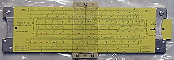 New N901ES Boxed Sets Pickett's Best Basic Math Rule! Can ADD, SUBTRACT and do 20 decade Multiplication/Division 12"/10" Full Size Simplex Math Slide Rule NEW boxed sets complete with Case, Manual Reprint, and some have Warranty Certificate. ES (Eye-Saver) Yellow aluminum construction. Very high quality, American Made, Pickett rule. This rule exists in two formats, and later ones came without the special rear scales, and just a trig manual. We reprinted the correct manuals to match these scale sets. An excellent student rule with the unusual ability to ADD and SUBTRACT, and do 20 decade calculations. Boxes have carton creases, storage scuffs, tears and marks, we will ship the best first. We have had many parent requests for these, due to the unusual abilities, so we are happy to finally have some again! (10 Scales) Can ADD and SUBTRACT! |