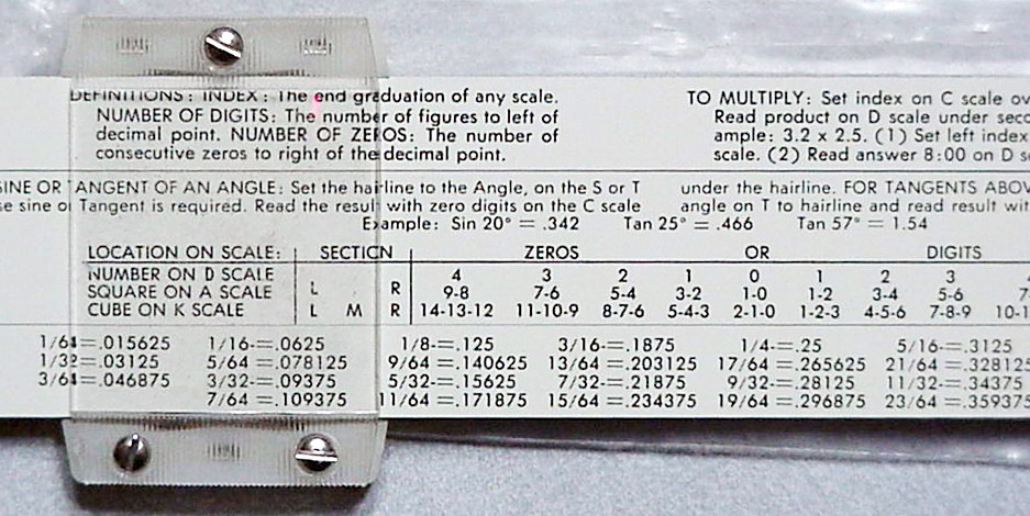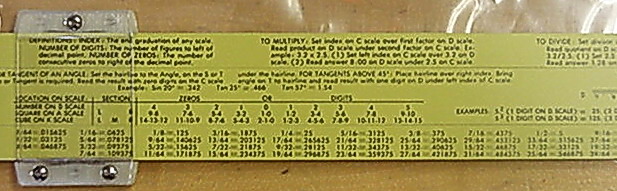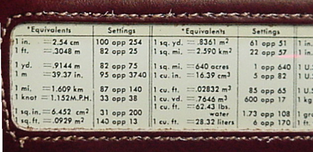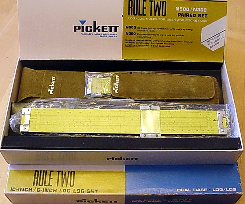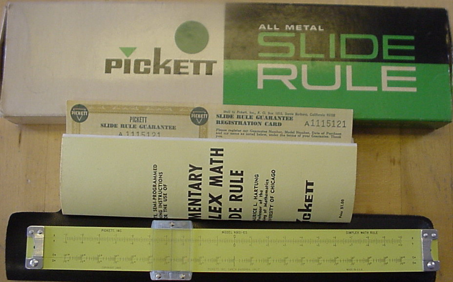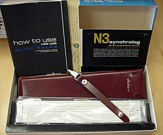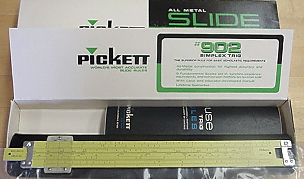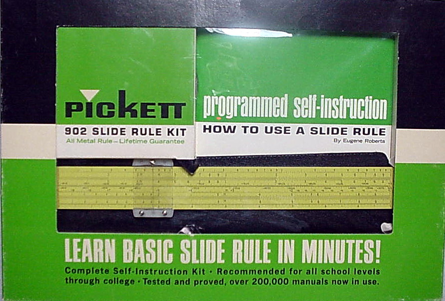 New N902K-ES Learning Kit Boxed Set Pickett's Best Self-Teaching Rule packaged with a detailed Self-Instruction handbook! ![]() 12"/10" Full Size Simplex Trig Slide Rule NEW boxed sets complete with Case, Self-Instruction Manual, and Warranty Certificate, all have extensive directions on the reverse of the rule! ES (Eye-Saver) Yellow aluminum construction, T (traditional) white construction. Very high quality, American Made, Pickett rule. These self-instruction kits are very hard to find now, we got just one set. Here's your chance to get a great instructional rule that never loses its manual (it's imprinted on the back surface!) at a great price. An excellent student rule with good trig capability. Mint condition set We have had many parent requests for these, so we are happy to finally have some again! I wish we could find a truck load of these... (9 Scales) Fully Self-Documenting on the reverse side! |