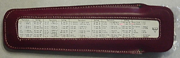 6"/5" Pocket Log Log Slide Rule BRAND NEW, with the elegant factory display box, Pocket Duplex Log Log Rule, a very powerful compact rule. Traditional White (T), aluminum construction with black scales. Don't miss your chance to get one of these powerful pocket rules. They are an excellent design, and come in a great set, complete with gold embossed, leather pocket clip case and manual, some even have the original warranty card inside. We just got these in, great for school or as a gift, they look wonderful! (16 Scales) Front - LL1, A, [ B, T, S, C, ] D, LL2 Back - LL3, DF, [ CF, CIF, CI, C, ] D, L |