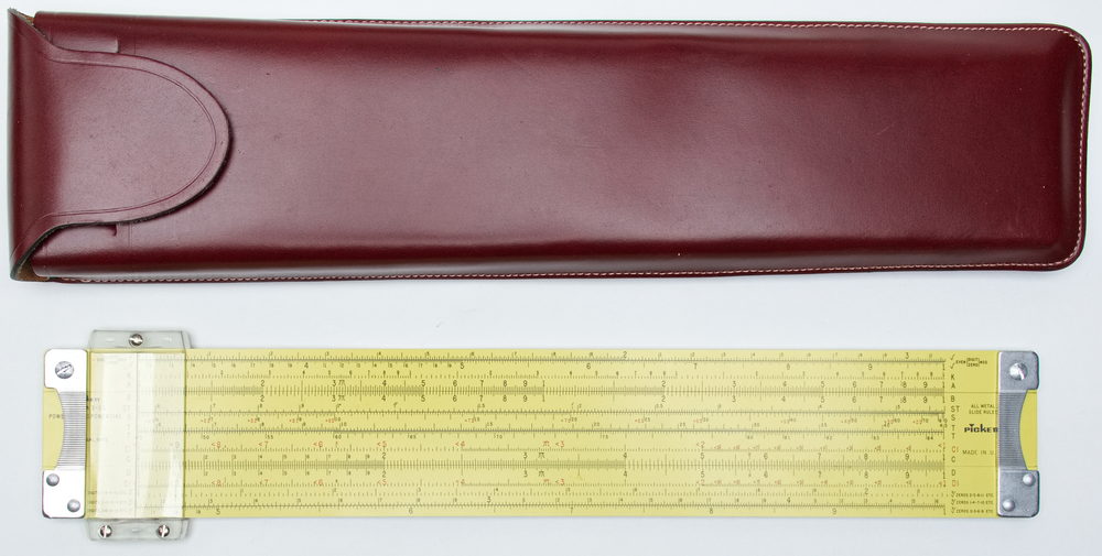 Great BOXED Log Log Sets! 12" / 10" Hi Log Log Duplex Slide Rule VERY LATE MODEL, BRAND NEW, full boxed set with black leather case. Traditional (T) white coated aluminum construction, black and red scales. This is a very sophisticated rule, made in the trademark aluminum body format by Pickett. These are the first boxed N500T sets we have had in for almost 2 years. Boxes are marked 500T, but the rules are actually N500T (new cursor) sets. (22 Scales) Front - LL2+0.1, LL2-0.1, DF [ CF, CIF, L, CI, C ] D, LL3+1.0, LL3-1.0 Back - LL1+0.01, LL1-0.01, A, [ B, T, ST, S, C ] D, DI, K | White SORRY, SOLD Includes: $149