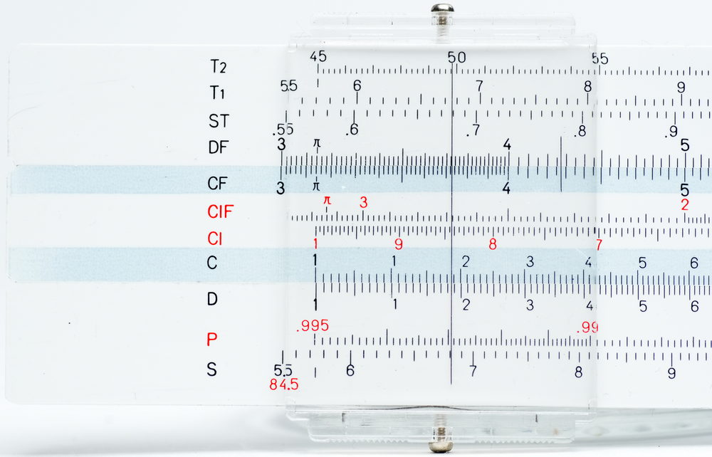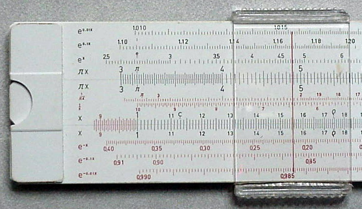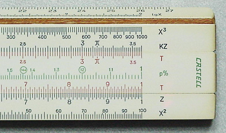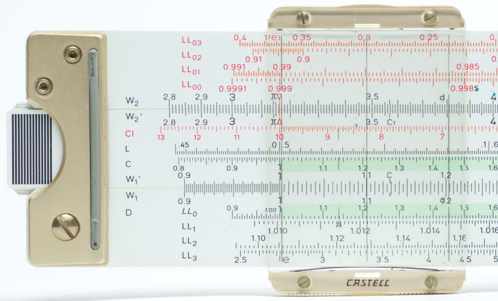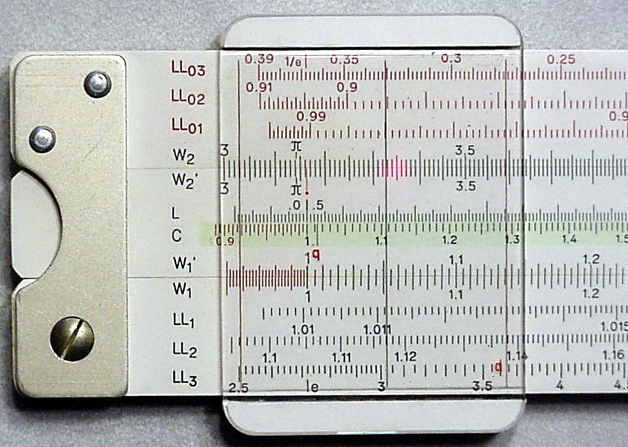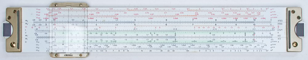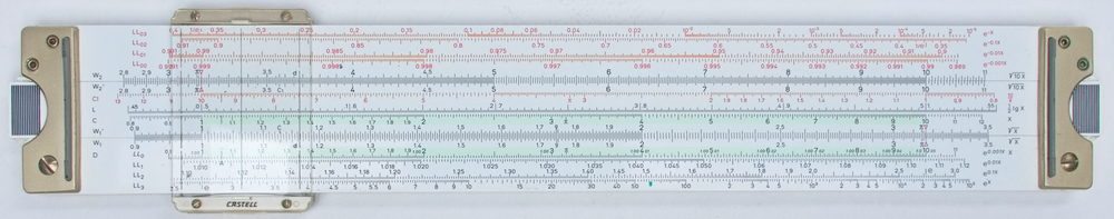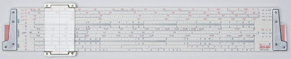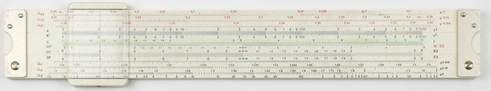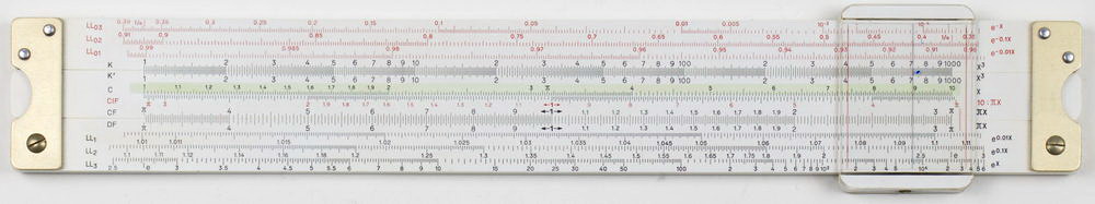 Rule is self documenting on right hand side for all scales. Has Pythagorean scale (P), expanded square scales, folded scales and scale over-ranges. . (24 scales, 10 cursor lines) Front - K, T1, T2, DF, [ CF, CIF, CI, C, ] D, S, ST, P Back - LL03, LL02, LL01, W2 [ W2', L, C, W1', ] W1, LL1, LL2, LL3 |