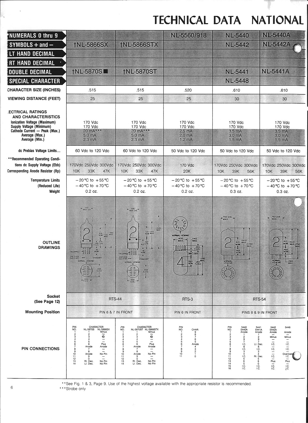 NATIONAL NL-Series NIXIE TUBE DATA