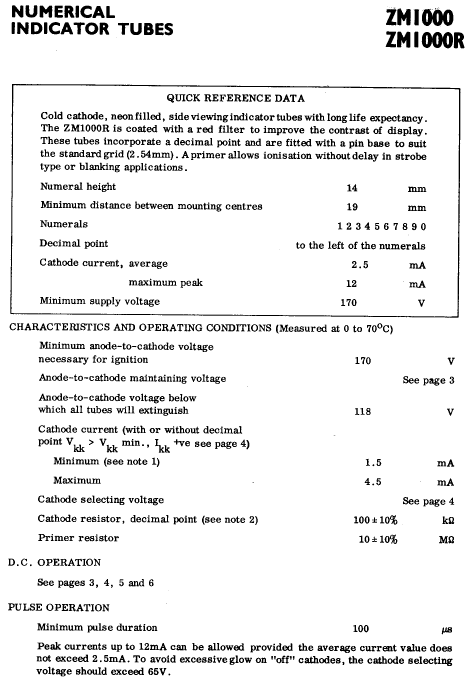 YOU ARE HERE!![]() & Numitron Tube Data |
