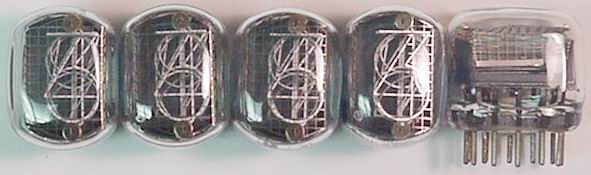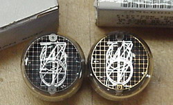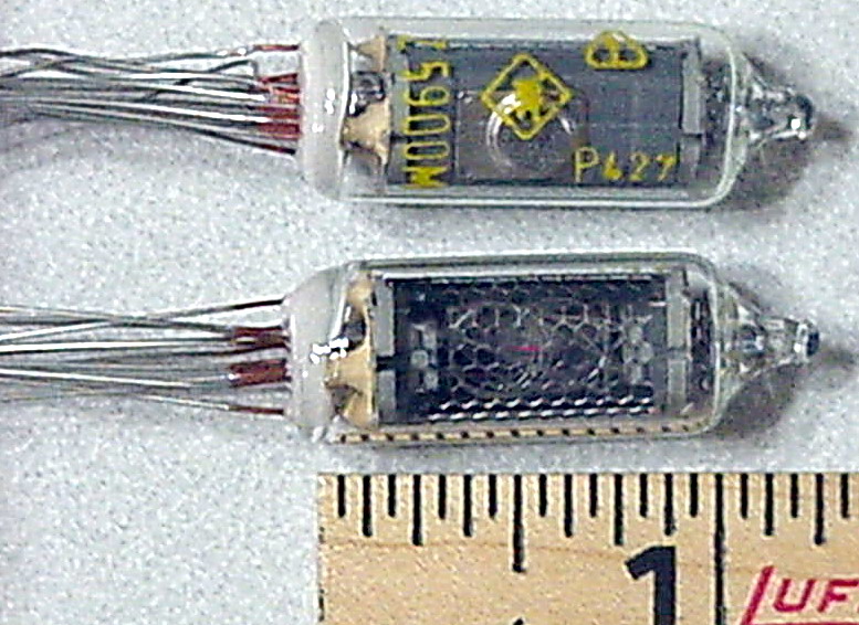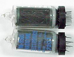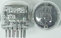 Top view, NIXIE tubes. Large +/- characters only, NO DP. New, boxed, look very good, compact spacing format. Match 5991 in appearance. Every tube fully tested, known good. | $15 Ea. |