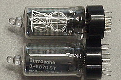 ![]() Side view, medium digit NIXIE tubes, RH/LH DP, socket or solder, appears to be the same as Burroughs B-585x series. As received, look new. | $15 Ea. |