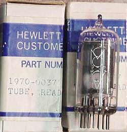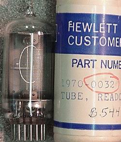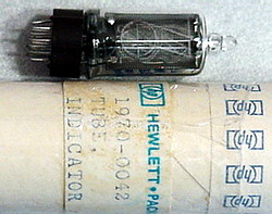 Side view, large digit NIXIE tubes, very late style, miniature 16 pin pluggable base type, No DP (although posts will glow if excited). Used in HP test gear, very popular tube. New factory boxed tubes. | $25 Ea. |