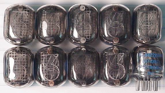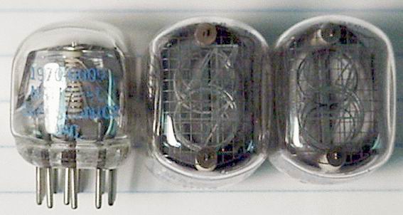 ![]() Side view, large digit NIXIE tubes, smooth top, LH DP, 13 pin (3/10). As received. | $12 Ea. |