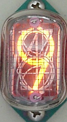 Side view, medium digit NIXIE tubes, can be soldered to PCB, includes bottom spacer/insulator and 6 long flying leads, has only + (plus) and - (minus) signs, great for a clock heartbeat signal. Extremely attractive, ideal for experimenters thanks to solder attachment. Factory new boxed parts. | $18 Ea. |